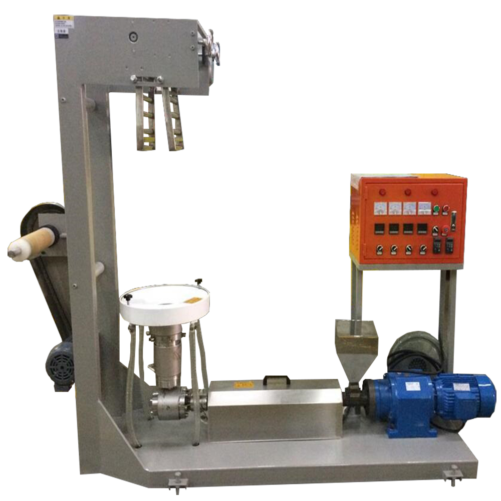 擠出吹膜是指在一定溫度,一定剪切力的作用下使塑膠熔體連續的通過口模被擠出,由壓縮空氣吹脹,風環冷卻和變頻牽引而獲得的雙折塑膠薄膜的工藝過程。本機主要用於檢測聚合物材料的吹膜可行性和材料內的膠質狀況,以及有色分散物、控制混合物、擠出物的分散性。